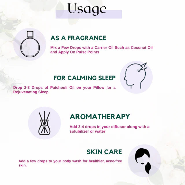 Patchouli essential oil is a versatile and popular oil with a rich, earthy aroma. It reduces stress, improves mood, soothes skin, and promotes relaxation. Our high-quality oil is pure and potent, steam-distilled from patchouli leaves. Enhance your well-being with patchouli essential oil.